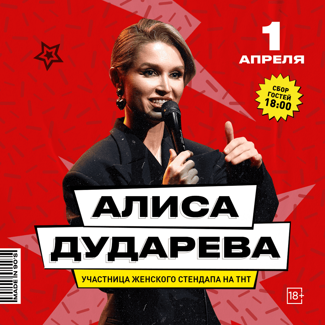 Хедлайнер вечера — Алиса Дударева, участница «Женского стендапа» на ТНТ, с острым, честным и современным юмором.