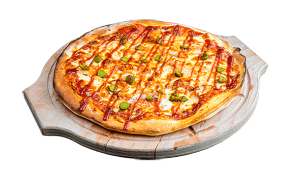 Томатный соус, филе цыпленка, сыр моцарелла, корнишоны, соус BBQ