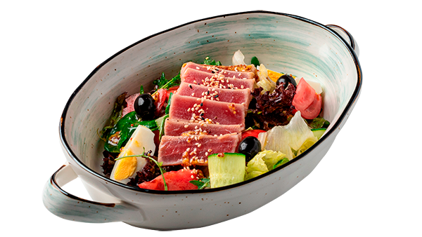 Салат из свежих овощей а-ля нисуаз с маринованным тунцом