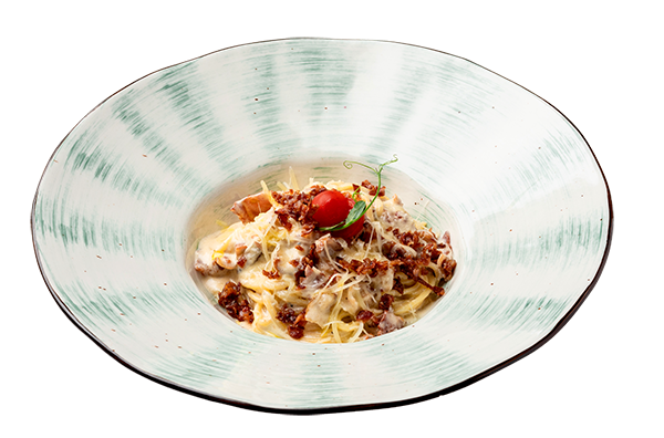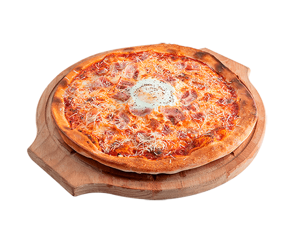 Томатный соус, сливки, сыр моцарелла, бекон, яйцо