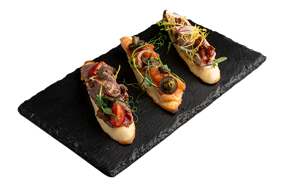 С ростбифом и соусом из тунца, с лососем и каперсами, с цыпленком и вялеными томатами