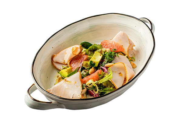 Зелёный салат с копчёной индейкой, авокадо и грейпфрутом