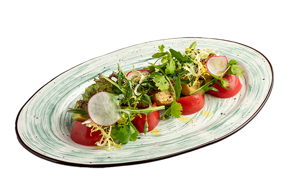 Салат из цыпленка тандури со свежими овощами и зеленью