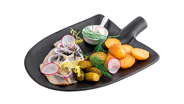 Филе сельди с молодым картофелем и маринованными корнишонами